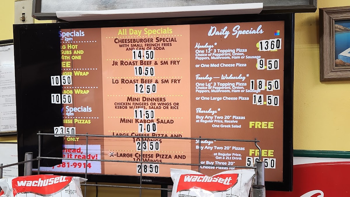 This menu fits well with the friendly, neighborhood atmosphere — perfect for a quick lunch special, a casual family dinner, or group gatherings. Whether ordering in for a cozy night at home or stopping by for a slice with a soda, the food encourages simple, satisfying moments that feel familiar and welcoming.